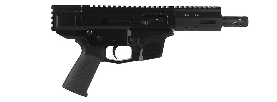 My 5-inch barrel version weighs just 4.4 pounds and is barely longer than a full-size handgun with an extended magazine — it genuinely disappears into a backpack. Even the 7.5-inch model keeps things lighter than a lot of rifle-caliber AR pistols.