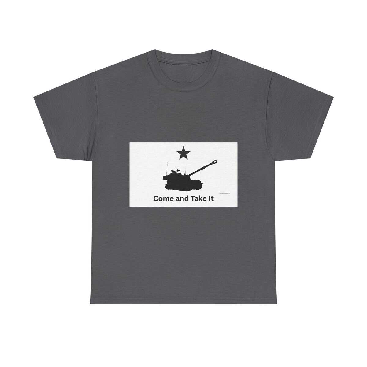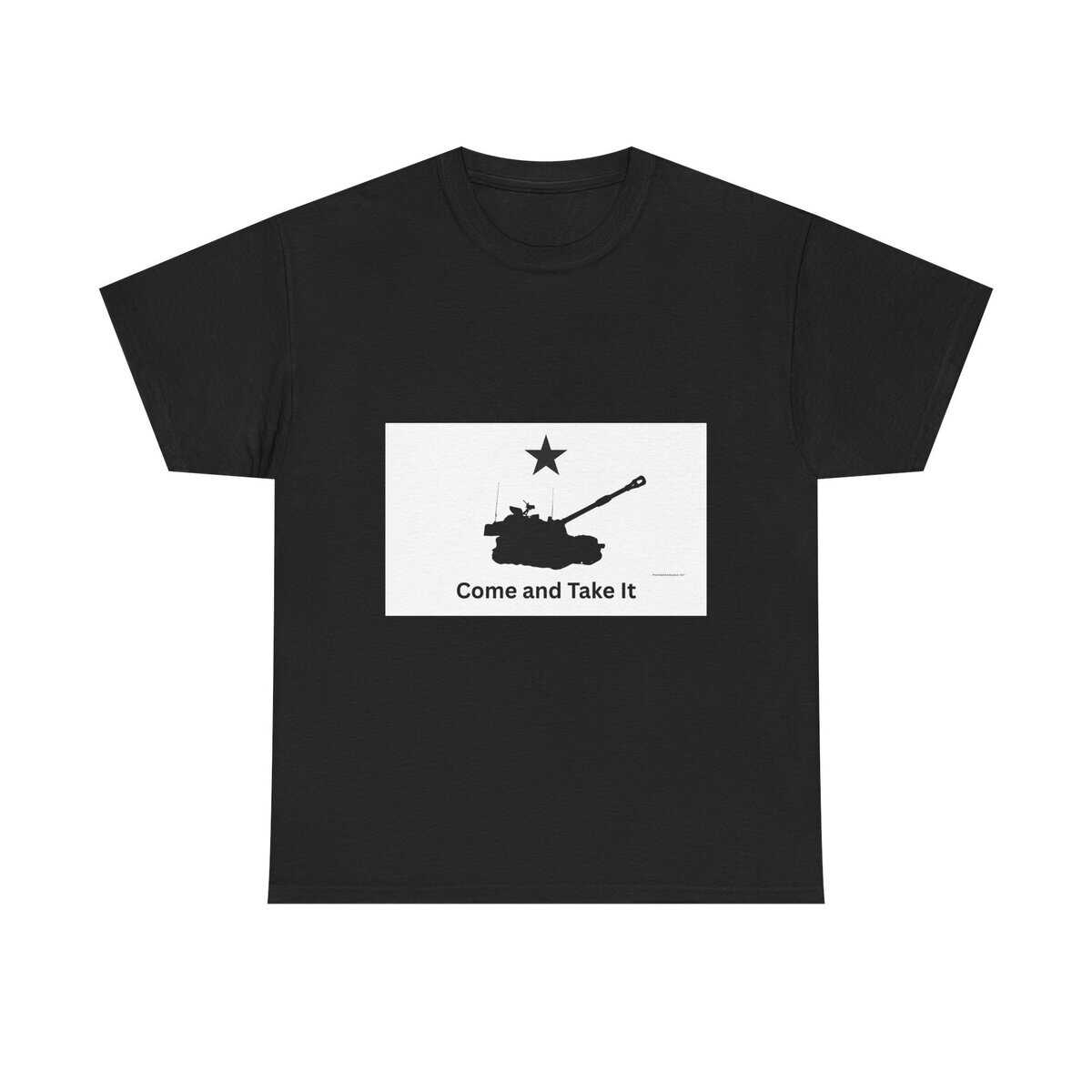 The “Come and Take It — Modern Armor Edition” T-Shirt is a fusion of history, heritage, and unbreakable will. It pays homage to the defiant spirit of the first Texian revolutionaries while bringing their message forward in unmistakable modern steel.